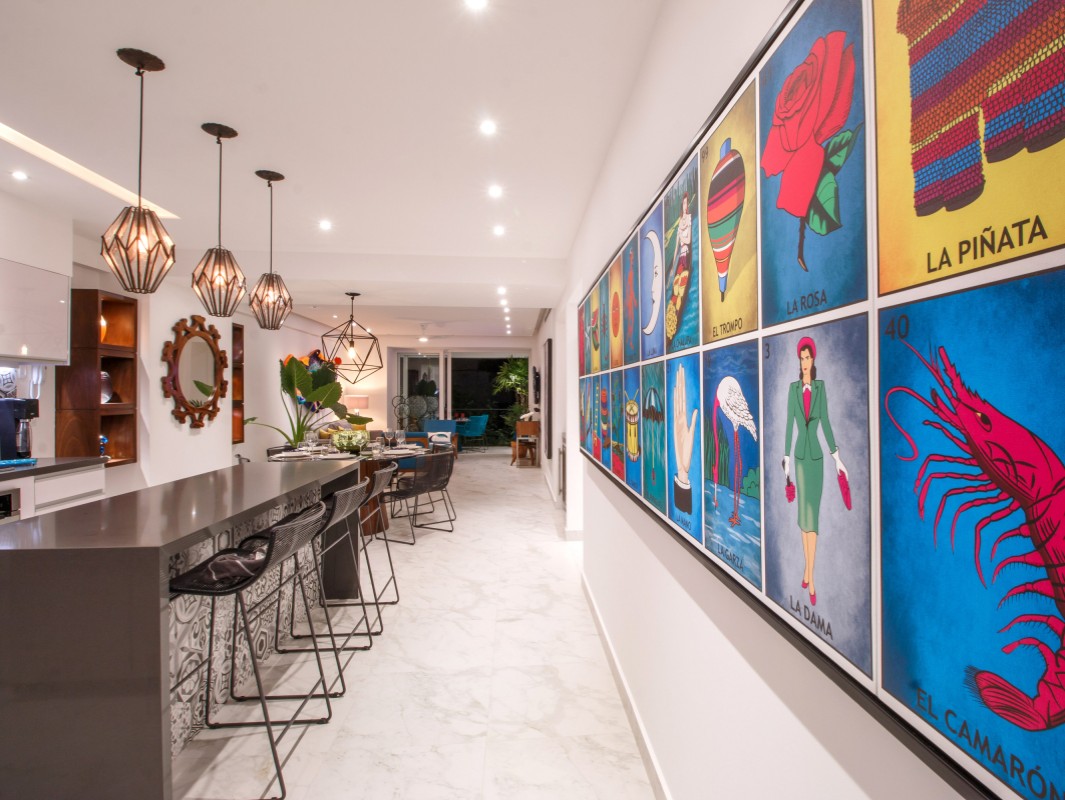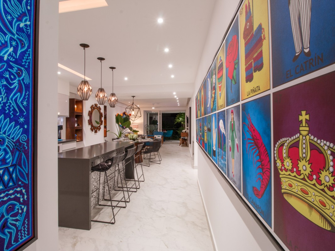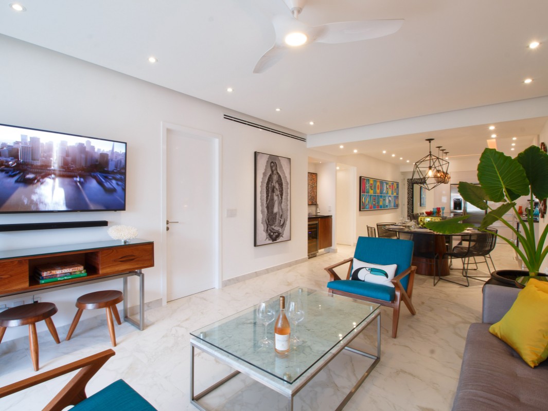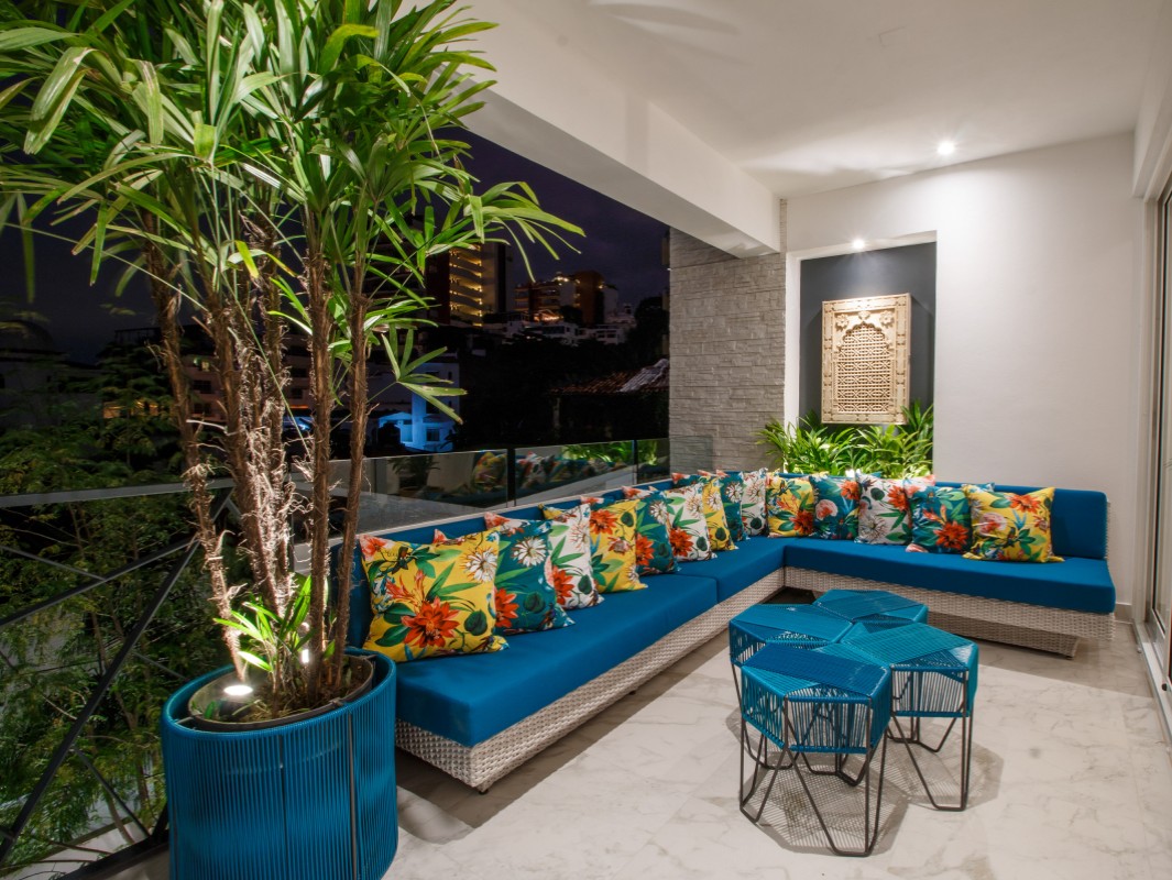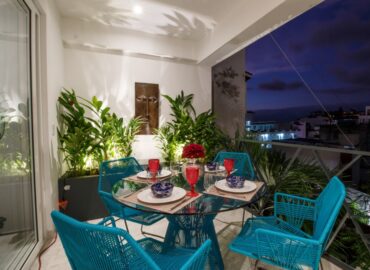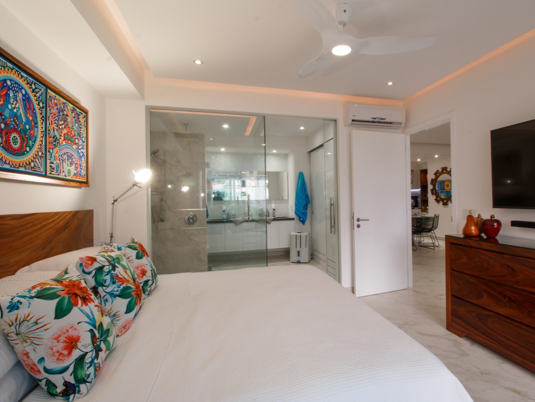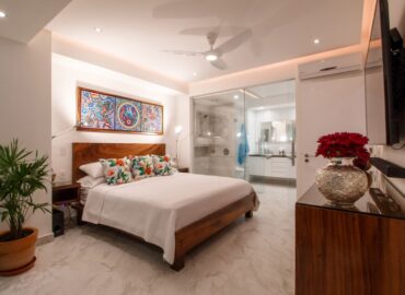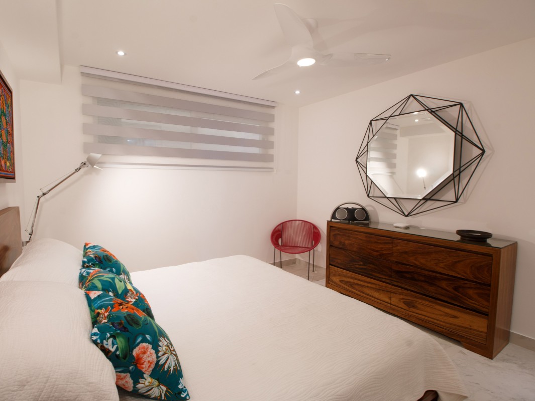 Unit 201 has 2 bedroom, 2 bathroom and is beautifully decorated. The residence offers beautiful views of the town and mountain while offering a cool sanctuary from the rooftop sun and beautiful beaches nearby. The residence features a spacious 1,500 square feet of professionally designed and thoughtfully appointed interior living space, with stunning contemporary furnishings and custom built-ins that merge modern design with contemporary Mexican art work.