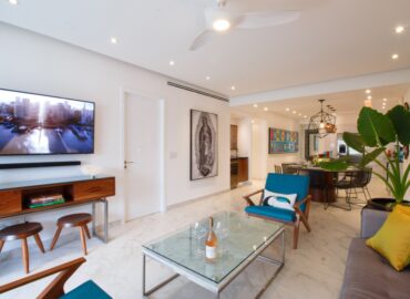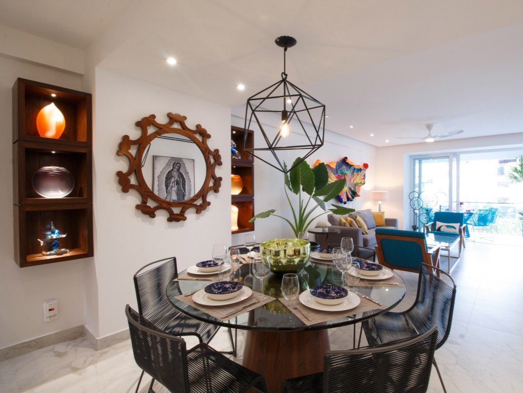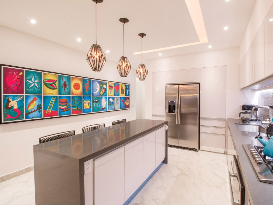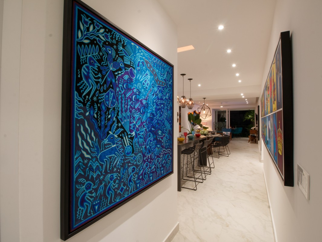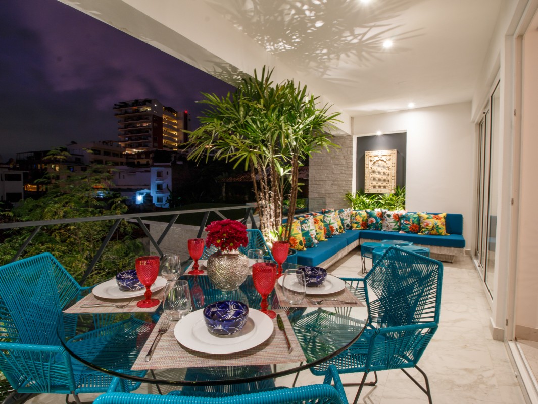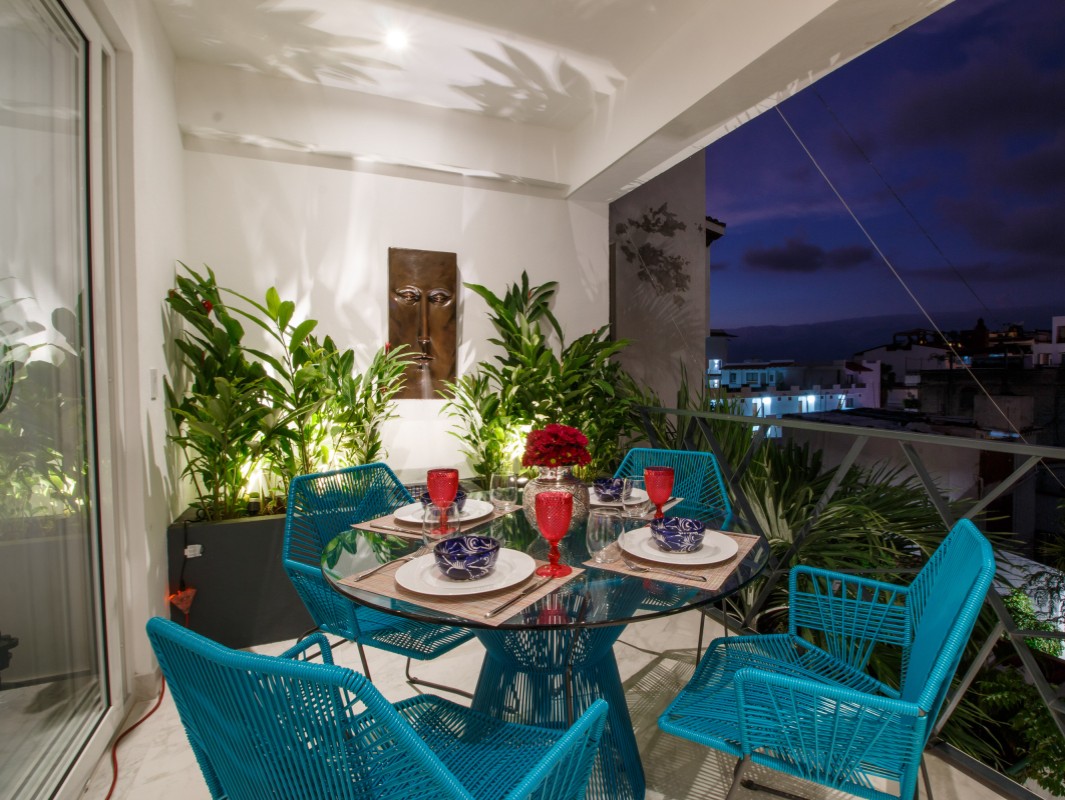 Unit 201 has 2 bedroom, 2 bathroom and is beautifully decorated. The residence offers beautiful views of the town and mountain while offering a cool sanctuary from the rooftop sun and beautiful beaches nearby. The residence features a spacious 1,500 square feet of professionally designed and thoughtfully appointed interior living space, with stunning contemporary furnishings and custom built-ins that merge modern design with contemporary Mexican art work.